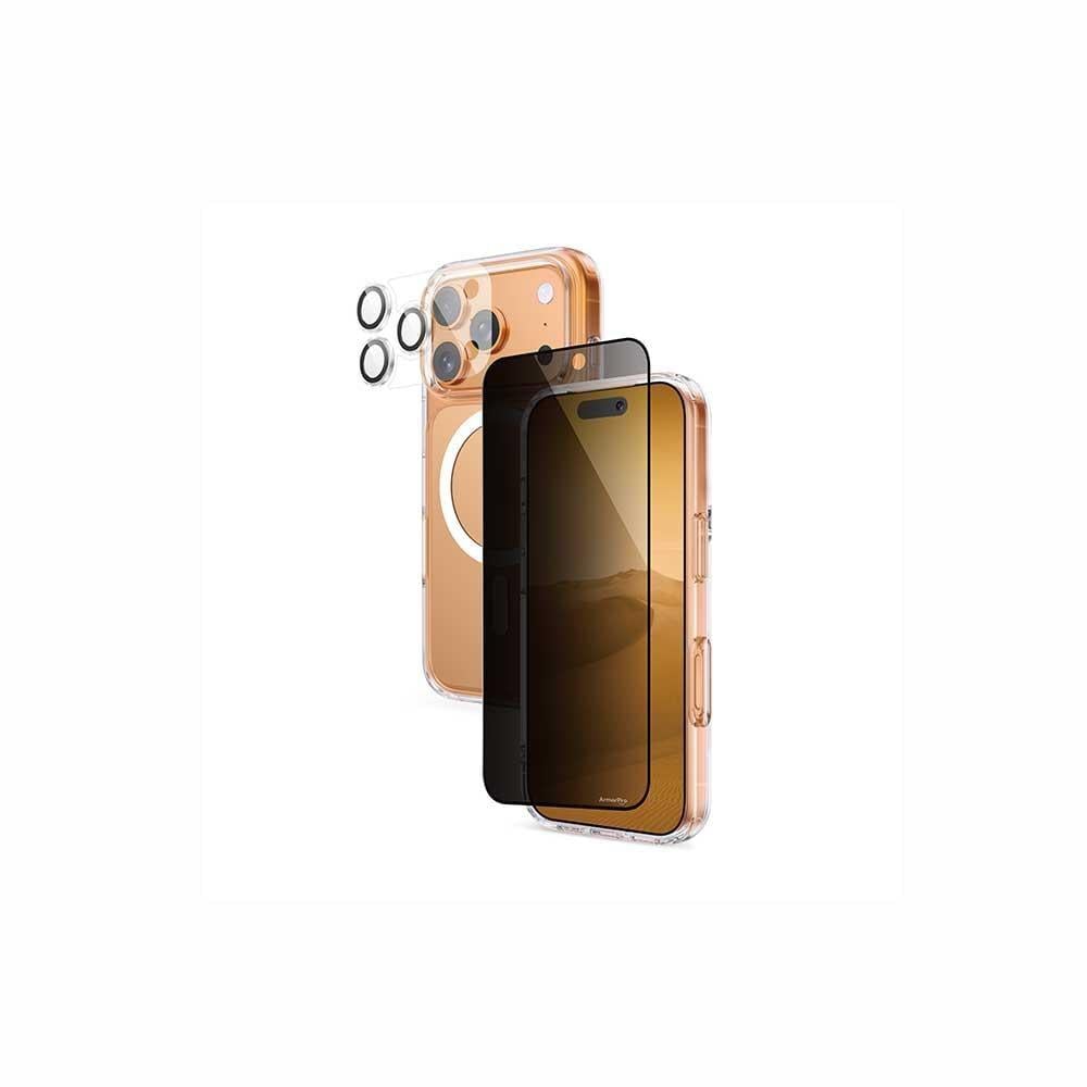 بكج ArmorPro 4 في 1 يقدم حماية شاملة لجهاز iPhone 17 برو، ويجمع كل ما تحتاجه في علبة واحدة. يشمل لاصقة شاشة خصوصية عالية الجودة، عدسة حماية للكاميرا، غطاء حماية للكاميرا، وكفر شفاف متوافق مع ماج سيف ليمنحك حماية متكاملة مع سهولة تثبيت الإكسسوارات والشحن المغناطيسي بدون أي تعقيد.