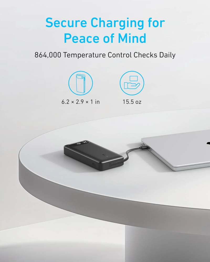 انكر بطارية بسعة 20,000 ملي امبير بقوة 87 واط بمنفذ تايب سي ومنفذ يو اس بي مع سلك مدمج