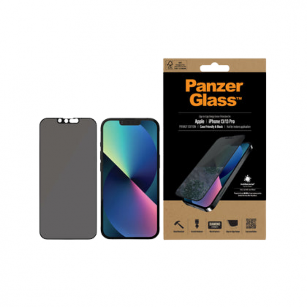 واقي شاشة PanzerGlass ™باللون الأسود مع خصوصية يتميز بنفس المزايا الأساسية مثل الزجاج الأصلي ، مع حماية محتوى الشاشة أيضًا. يجعل مرشح السرية محتوى الشاشة غير مرئي تقريبًا للجميع باستثناء مستخدم الجهاز. في الوقت نفسه ، يقلل من التعرض للضوء الأزرق ويتميز بطبقة مقاومة للوهج ، مما يقلل من انعكاسات الضوء التي تصل إلى عينيك دون التأثير على رؤية الشاشة.