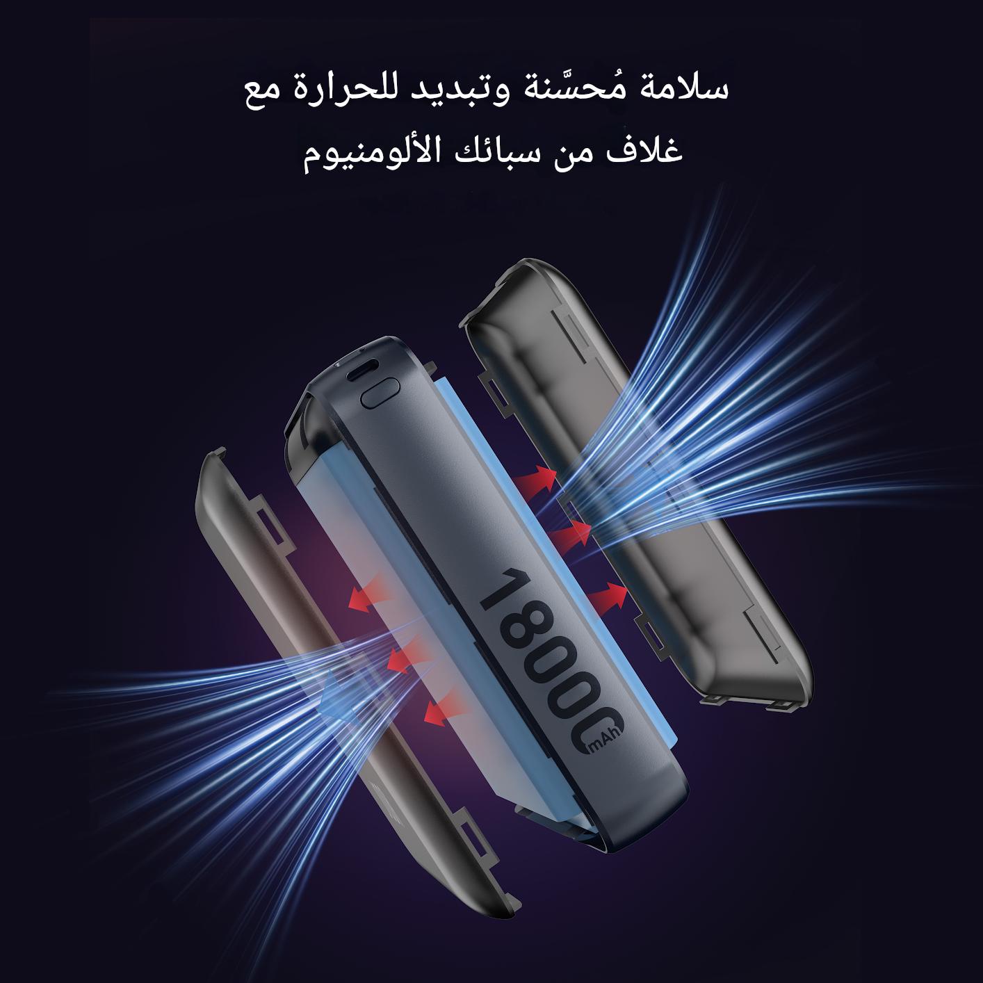 بطارية متنقلة بسعة كبيرة 18000 مللي أمبير، تقدم أداءً فائقًا في تصميم مدمج يناسب جيبك أو حقيبتك بكل سهولة.