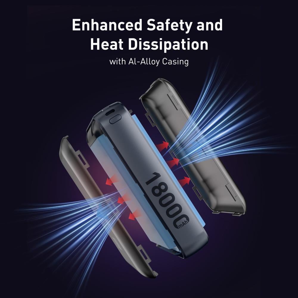 غلاف من سبائك الألمنيوم يساعد على تبديد الحرارة ويعزز السلامة أثناء الاستخدام.