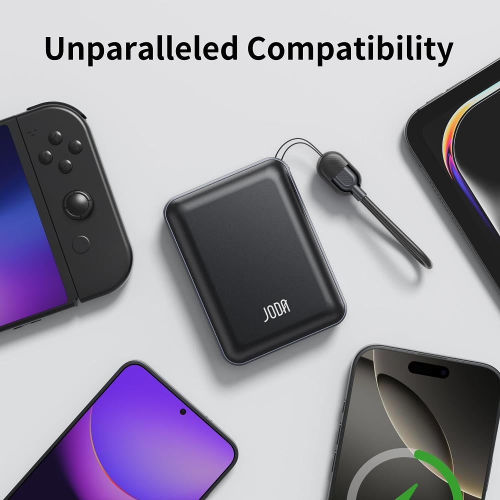 يدعم الشحن السريع بقدرة 22.5 واط عبر منفذ USB-C المرفق، ويعمل بكفاءة مع أغلب الهواتف الذكية والأجهزة الأخرى.