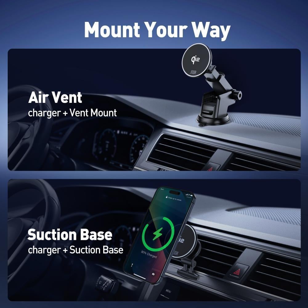 قاعدة الجوال اللاسلكية JODA للسيارة Mag Safe C1 هي حل شحن سريع وفعال لهواتفك المحمولة.