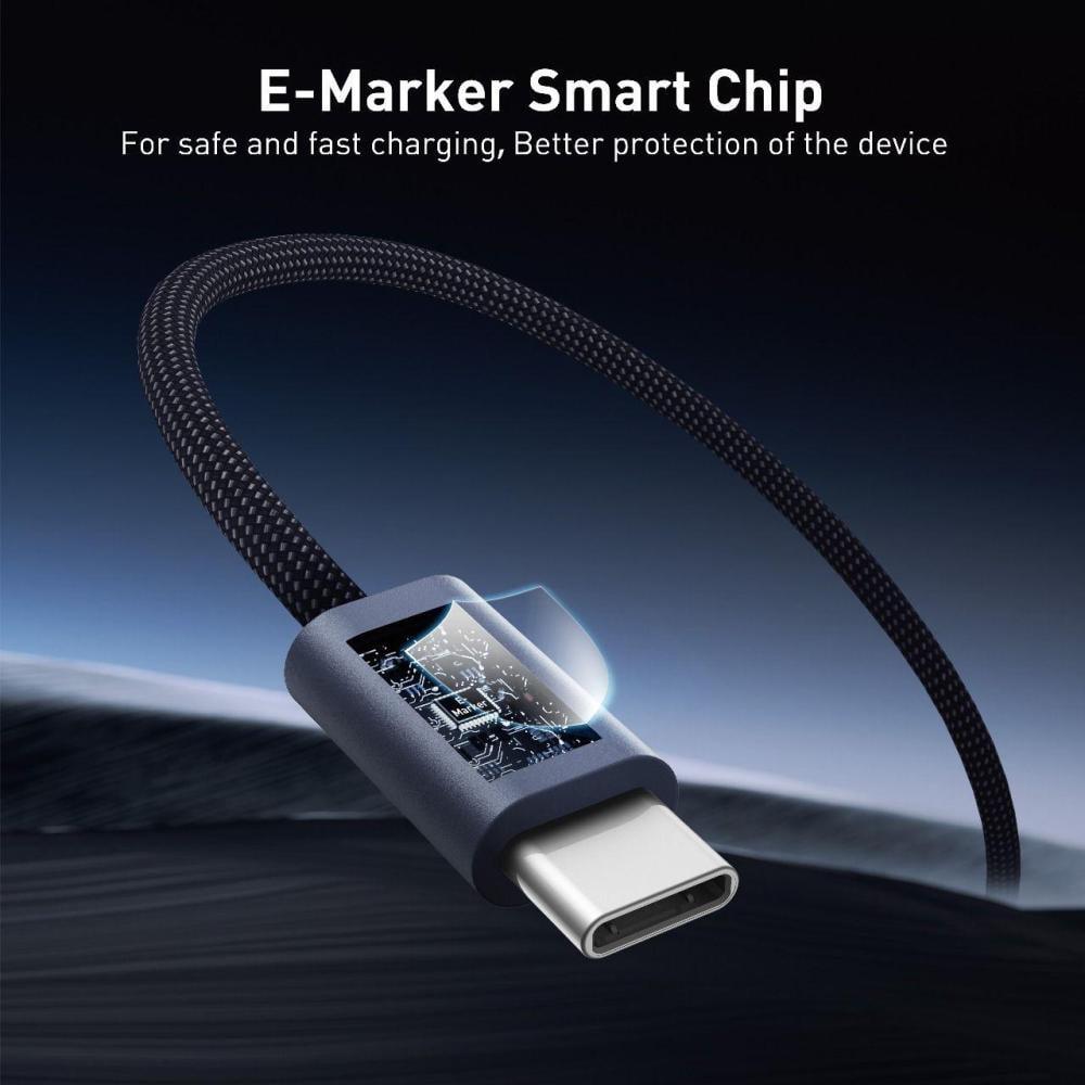 كيبل جودا تايب سي إلى تايب سي بقدرة 240 واط بطول 2 متر مصمم لتقديم أسرع تجربة شحن ونقل بيانات. الكيبل مصنوع من نايلون مجدول عالي التحمل ليمنحك متانة تدوم طويلاً ومقاومة للانحناءات اليومية. مزود برقاقة ذكية E-Marker تحمي أجهزتك وتضمن شحن آمن وسريع.