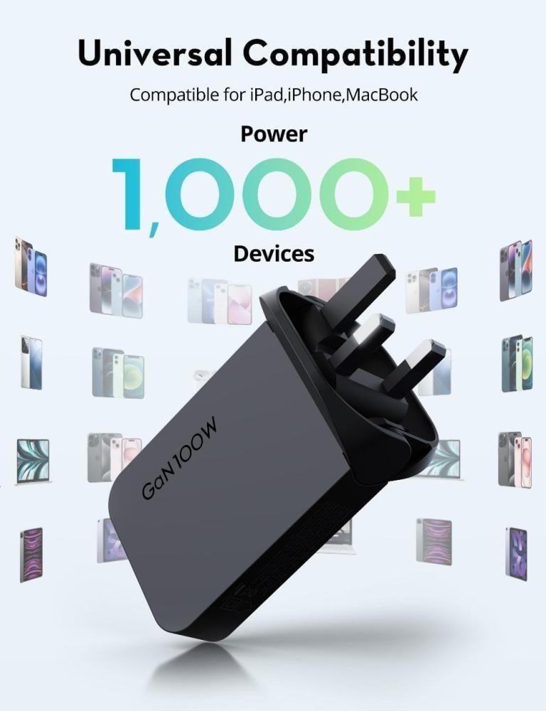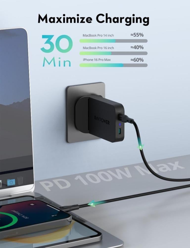 - قدرة شحن فائقة تصل إلى 100 واط لشحن الأجهزة الكبيرة مثل MacBook Pro بكفاءة.