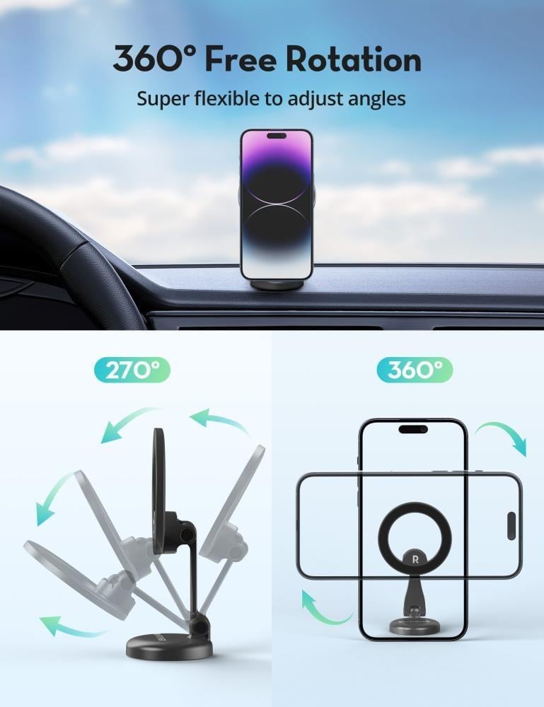 • يمتلك ravpower استاند جوال إمكانية تدوير بزاوية 360 درجة لضبط زاوية الرؤية كما تُحب.
