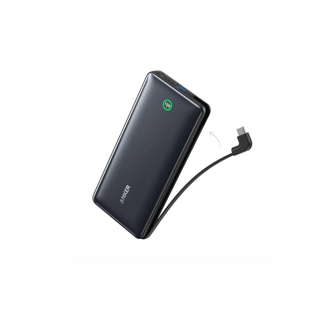 - باور بانك انكر a1387 تعتبر من الشواحن التي تمتلك تصميم أنيق نحيف وخفيف الوزن حتى تحملها بسهولة دون الشعور بثقل، كما أنها تتضمن كابل USB-C مُدمج متين يوفر لك شحنًا سريعًا.