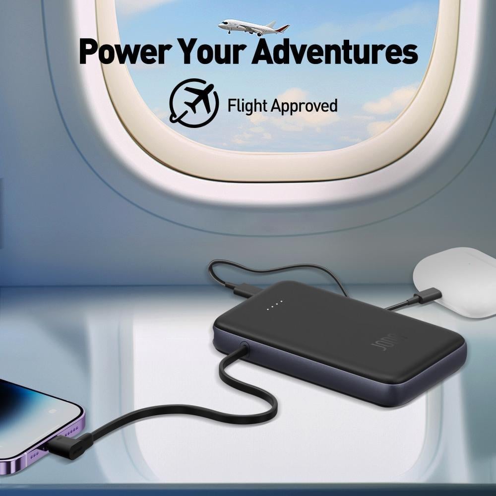 - بطارية متنقلة مع سلك مدمج تايب سي بقوة 20 واط بسعة 10,000توفر مزيجًا من السعة المتوسطة والقوة العالية، وتدعم الشحن السريع بفضل منفذ تايب سي وUSB.