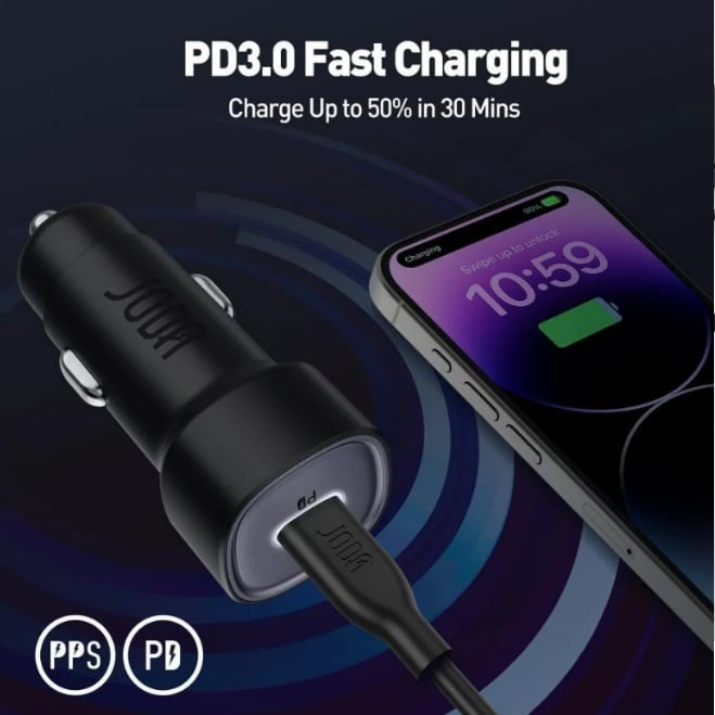 في الطريق؟ استخدم جودا شاحن سيارة سريع بقوة 20 واط ومنفذ Type-C مزدوج.