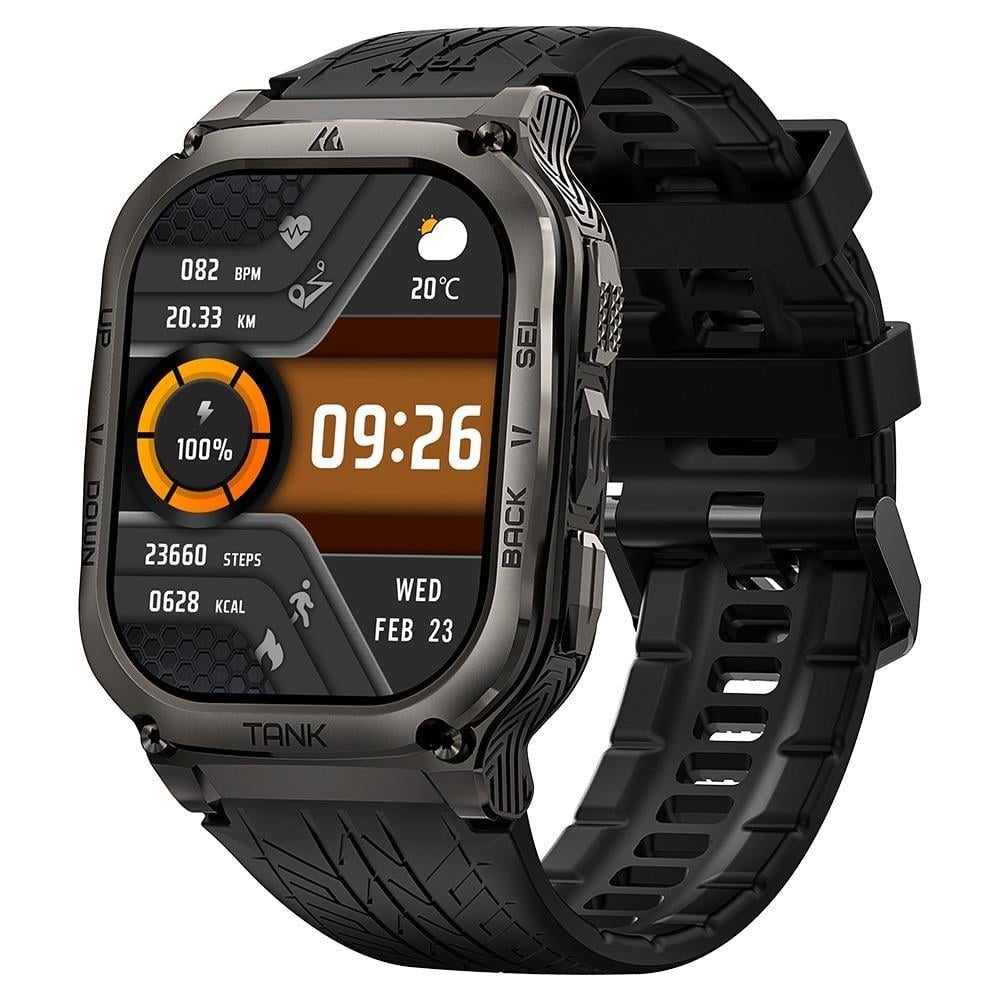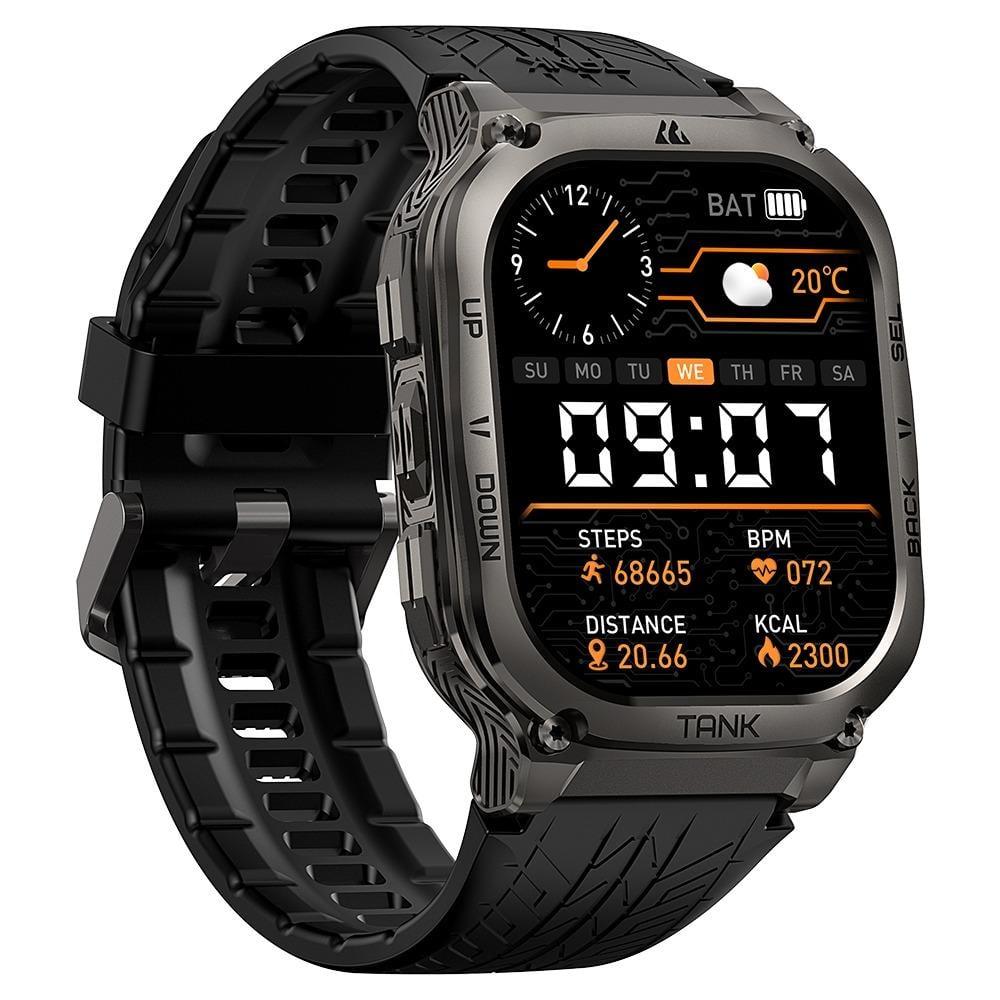 ساعة Kospet Tank M3 (باللون الأسود) صُممت لتلائم عشاق الرياضة والمغامرات بفضل تصميمها القوي وحجمها الكبير 49 ملم. تتيح لك الساعة إجراء واستقبال المكالمات عبر البلوتوث، إضافةً إلى أنها تتمتع بمعيار IP69K المقاوم للماء والأتربة، مما يجعلها مثالية للأنشطة الشاقة والظروف القاسية. كما تدعم أكثر من 170 وضعًا رياضيًا لتلبية مختلف احتياجات اللياقة البدنية، وتوفّر مستشعرات صحية متكاملة لمراقبة أدائك البدني بشكل فعّال.