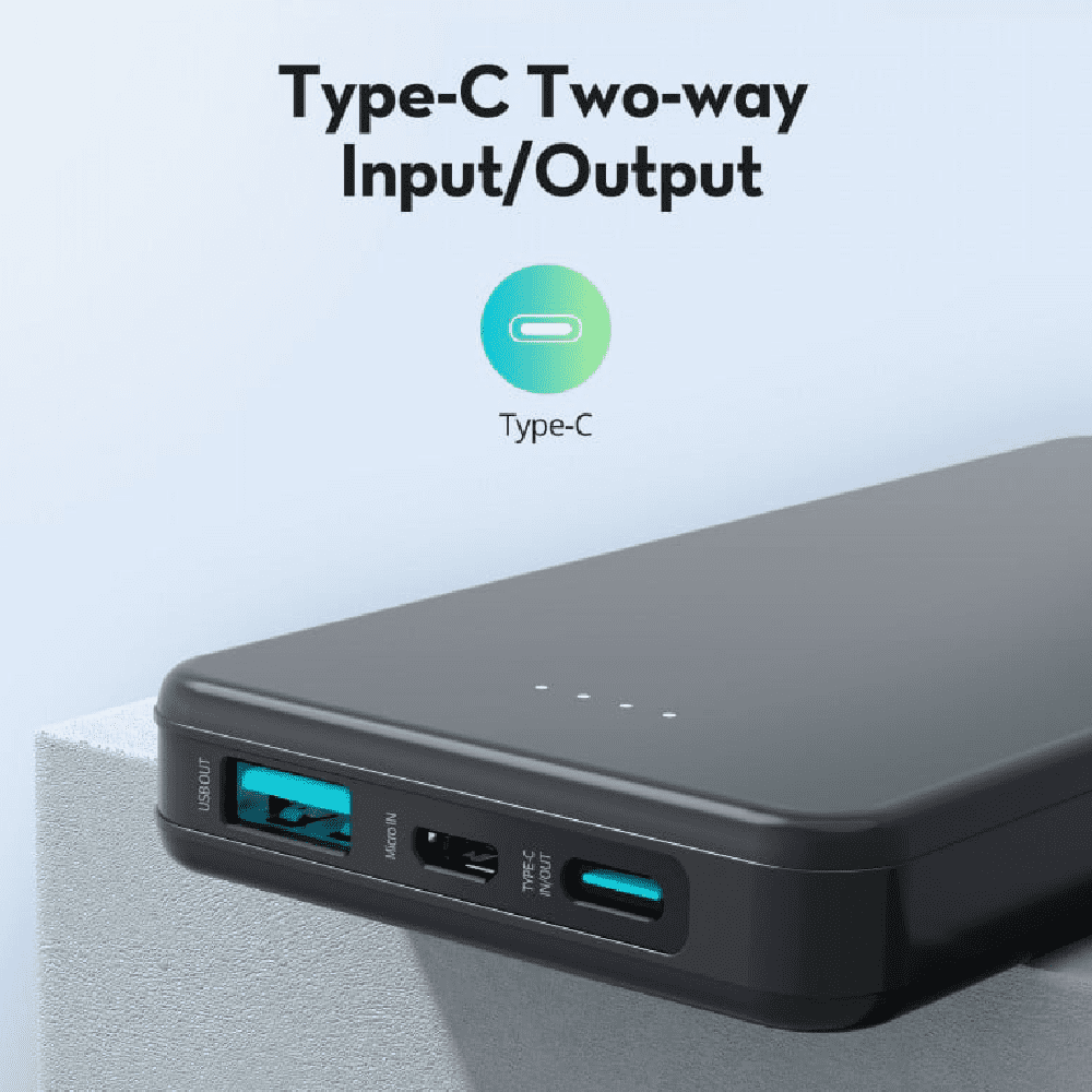 تأتي البطارية المتنقلة راف باور مزودة بمنفذ تايب سي يدعم الإدخال والإخراج، ومنفذ USB-A للإخراج، ومنفذ مايكرو USB للإدخال. يتيح لك هذا تصميمها كشاحن متنقل لشحن عدة أجهزة في نفس الوقت، مما يجعلها مثالية كـ باور بانك قوي 10000.